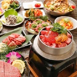 お昼は4000円からで新鮮な国産和牛を使った炙りユッケなどが食べ放題でも注文◎